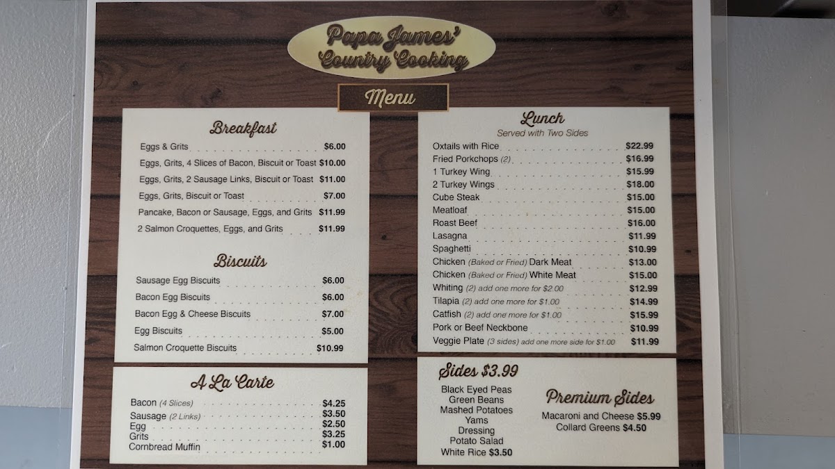Papa James Country Cooking is known for offering a warm, inviting atmosphere with a menu that satisfies both the soul and the stomach. The restaurant features a wheelchair-accessible entrance, making it convenient for everyone to enjoy their Southern favorites. If you're in a hurry or prefer to enjoy your meal at home, Papa James also offers takeaway services so you can bring the flavors of the South to your door.